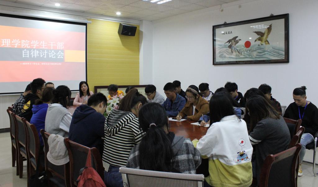 此次活动中,院校两级学生组织的学生干部学习了《学生会、研究生会干部自律公约》,各团学会主席对与会代表们提出了殷切希望与严格要求,希望建设一支胸怀理想、心系同学、品学兼优、作风扎实的工作骨干队伍,共同维护学生组织形象,更好履行工作职责,并围绕“恪守学生本分、牢记本会宗旨、永葆理想主义情怀、扎扎实实做事、营造平等氛围、摒弃庸俗习气”六个方面阐述了公约的精神。坚决反对“官”本位思想和作风,建设充满朝气、干净纯粹的组织文化,让学生干部更好的认清自己的职责范围,使学生组织更广泛的团结凝聚青年学生,更优质的服务于广大师生。随后,参会人员互相学习交流、总结此次活动,认真落实,做到理论与实际的统一。
