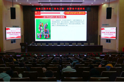 为深入学习贯彻习近平新时代中国特色社会主义思想,认真贯彻落实习近平总书记关于青年工作重要论述,进一步提升我校团学骨干的思想政治素养,11月29日,我校“青马工程”团学骨干培训班在一报告厅正式开班。学校特邀湖南省委教育工委党校常务副校长、湖南省高校干部培训中心书记刘国华教授作了一场《文化自信与民族复兴》的专题讲座,校级、院级主要团学骨干共计178名学员参与学习。