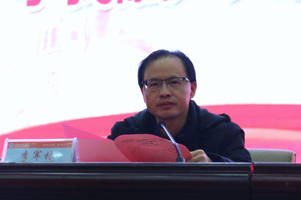 李军林在会议上讲话,他高度肯定了我校“三下乡”社会实践取得的成绩,对受表彰的集体和个人表示热烈祝贺,表示此次“三下乡”社会实践活动是我校实践育人的生动体现,是促进学生全面成长成才的重要内容和有效途径。李军林指出,我校各级团组织在疫情防控常态化的背景下,做出了大量卓有成效的探索与创新,广大师生善于吃苦,不畏艰难,整个活动主题鲜明,内容丰富,紧贴基层,积累了很多宝贵的经验。李军林对青年学生提出殷切希望,要提高专业知识实践化能力,努力将所学所得与实践结合,提升创新精神并不断完善创新机制,用行动去践行当代青年的责任与担当。他呼吁全校大学生珍惜机会,积极投身实践,为开创疫情防控下“三下乡”社会实践活动和高校助力社会复工复产工作的新局面共同努力。