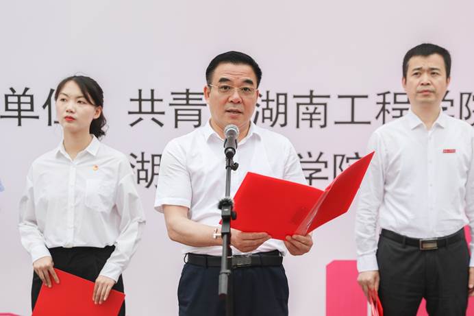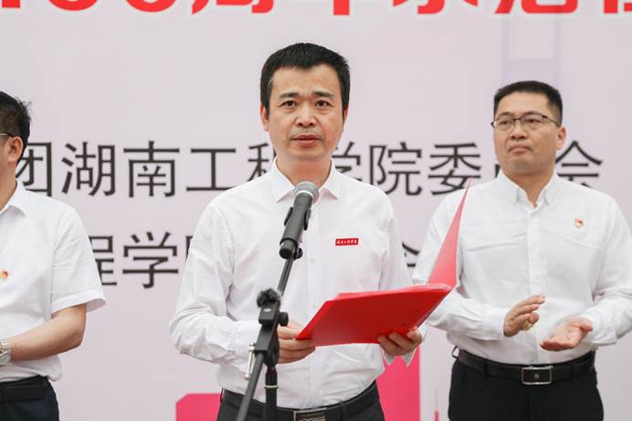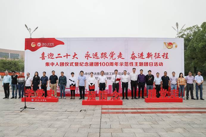 为贯彻落实习近平总书记在庆祝中国共产主义青年团成立100周年大会上的讲话精神,引导广大团员青年学团史、强信念、践使命、跟党走,5月27日,我校举行以“喜迎二十大 永远跟党走 奋进新征程”为主题的集中入团仪式暨纪念建团100周年示范性主题团日活动,党委书记陈岳堂,2017届校友、“全国优秀共青团员”李好,团委、宣传部、学工处、保卫处等部门负责人,各学院党委(党总支部)副书记、团总支书记,青年学生代表及新发展团员参加活动。仪式由党委委员、副校长张小刚主持。