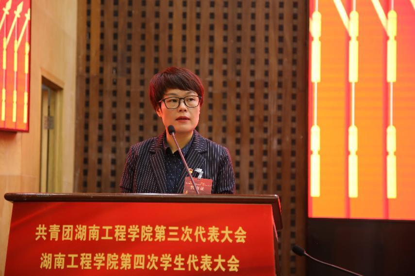 陈艳英代表共青团湖南省委向大会的召开表示热烈祝贺,向我校广大团员青年致以诚挚的问候,对我校共青团工作表示充分肯定和高度认可。陈艳英指出,近年来我校团委、学生会聚焦主责主业,积极履行职能,在思想政治引领、基层组织建设、校园文化建设、创新创业、社会实践等方面均取得突出成绩,为全省共青团事业的发展提供了鲜活经验。她希望学校各级团学组织和团学干部团结带领广大青年深入学习宣传贯彻党的二十大精神,进一步统一思想和行动,凝聚智慧和力量,在推进中华民族伟大复兴的新征程中书写奋进篇章。