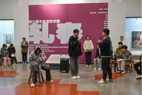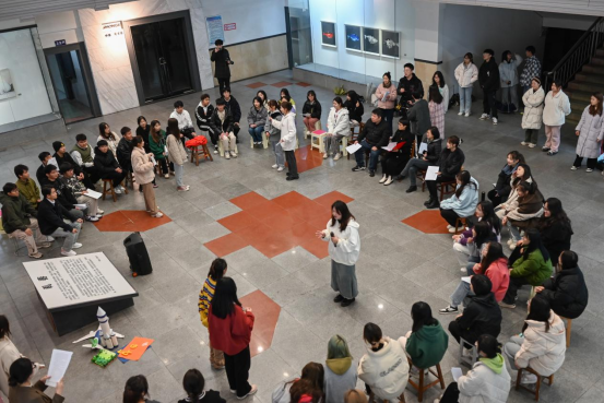 为引领共青团员爱党爱国,将党的二十大精神落细落实,3月24日,设计艺术学院基层团支部在校团委的指导下,开展“永远跟党走 奋进新征程”主题团日活动。本次主题团日活动,以校园内小舞台沉浸式演绎、观众沉浸式体验的形式开展,校团委书记刘琤、设计艺术学院党委书记施晓蓉、广告学2203班和视觉传达设计2203班全体同学共同参加。