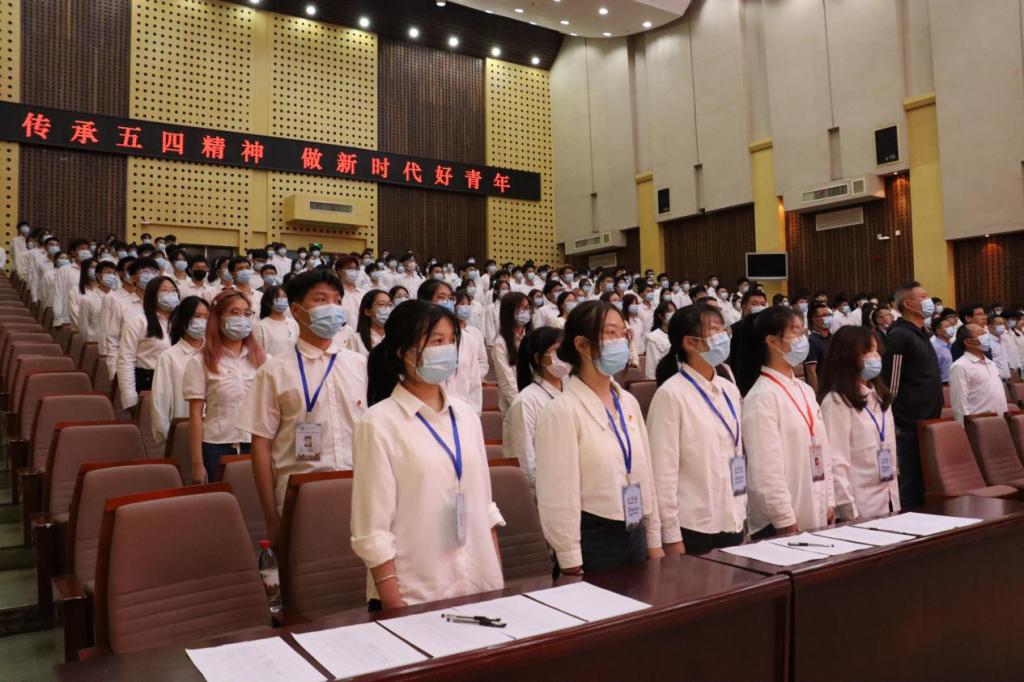 大会在雄浑嘹亮的国歌中拉开序幕。校党委副书记、校长易兵在会上讲话,他代表学校党委、行政,向受到表彰的先进集体和先进个人表示祝贺,充分肯定了我校各级团组织及广大团员青年在过去一年取得的成绩。易兵围绕习近平总书记给中国农业大学科技小院的学生回信精神深情寄语全校团员青年,一要胸怀理想,做志存高远的新时代青年;二要脚踏实地,做过硬本领的新时代青年;三要甘于奉献,做担当奋斗的新时代青年。激励学校广大青年师生要认真学习贯彻习近平新时代中国特色社会主义思想,把思想和行动统一到党中央、国务院对当代青年的希望、对教育改革发展的要求上来,大力弘扬五四精神,立大志、练本领、修德行,以更高的立意、更深的情感、更细的落实,在实现中国梦的生动实践中放飞青春梦想,在为人民利益不懈奋斗中书写人生华章。