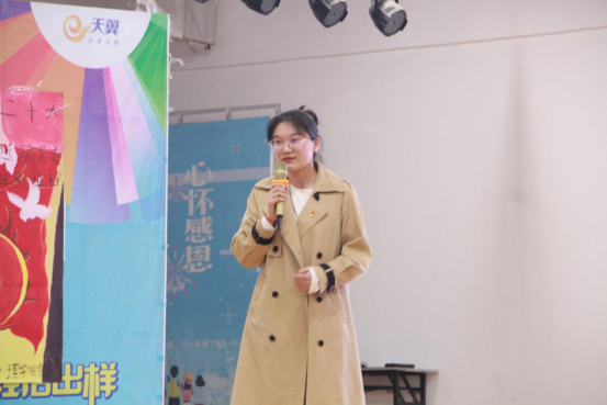 分享环节,获岳塘区“优秀共青团员”“青春榜样”称号的学生代表陈灿,向与会者分享了她的学习经历和就业意向,号召团员青年要勤学善思、严于律己,要善于研究、勇于创新,要敢于担当、心怀责任,以青春和热血投入到学习、生活和工作中。