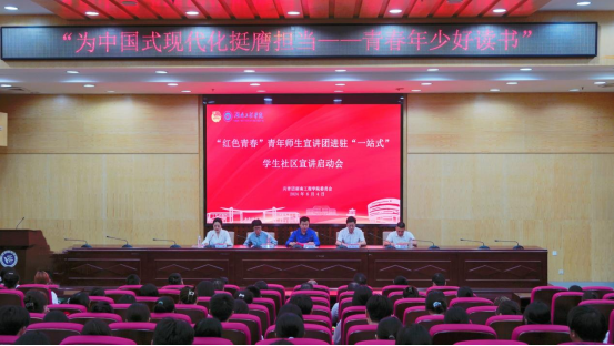 为充分发挥“红色青春”宣讲团在团员青年理论学习中的引领、示范和辐射带动作用,积极动员青年力量、服务力量深入学生一线,助推思政教育工作进社区,打通育人“最后一公里”,6月4日,“红色青春”青年师生宣讲团进驻“一站式”学生社区宣讲启动会在二报告厅举行。校党委委员、副校长张小刚出席。相关职能部门负责人、各学院党委副书记和团总支书记、“红色青春”宣讲团全体师生以及各学院学生代表参加会议。会议由团委副书记涂璐主持。