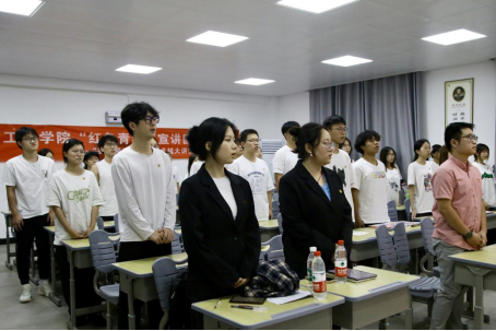 活动以团歌齐唱拉开序幕,罗铮率先带领青年团员深入解读党的二十届三中全会精神,鼓舞大家为中国式现代化挺膺担当,做建设社会主义文化强国的“天命人”。随后,宣讲团成员傅紫晗、刘时雨、赵一燃以及兰州分别作《从湘钢六十载峥嵘岁月洞察中国式现代化》《建党精神指引“可为”,青年力量书写“有为”》《推动文化自信自强,铸就社会主义文化新辉煌》《震山撼岳,铁血硬汉——吉鸿昌》主题宣讲。她们围绕“思想旗帜”“坚强核心”“强国复兴”与“挺膺担当”四大核心专题,号召全体青年团员紧密团结凝聚在党的周围,把握历史机遇、勇于担当作为,为实现第二个百年奋斗目标、中华民族伟大复兴的中国梦而不懈奋斗。