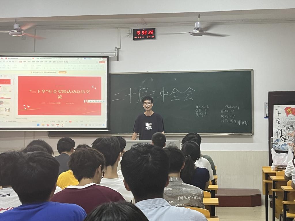 9月19日晚7点半,材料与化工学院示范性团日活动在四教 205 教室拉开帷幕。此次活动以“学习贯彻党的二十届三中全会精神”“实践归来话成长——暑期三下乡”为主题,由化学工程与工艺 2201 班和 2202 班共同开展。