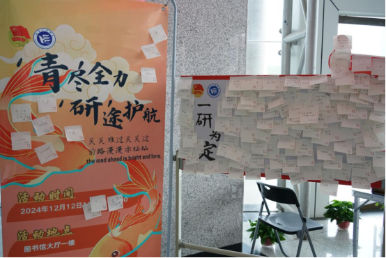在2025年全国硕士研究生招生考试即将来临之际,为缓解考研学子的备考压力,坚定考研信念,增强备考信心,12月12日,校团委“五彩湖工”志愿服务团在主校区图书馆举办了“‘青’尽全力,‘研’途护航”考研送温暖活动。