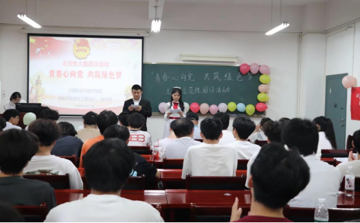 6月25日下午,计算科学与电子学院在主教学楼F205开展“青春心向党 共筑绿色梦”主题团日活动。校团委副书记涂璐、学院学生工作办公室主任李进、团总支书记杨俐及70余名青年团员参加。