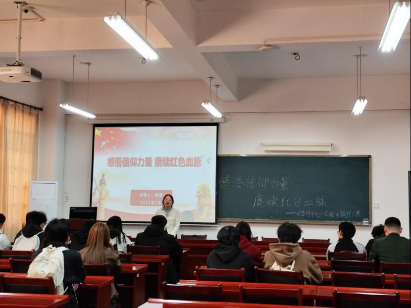 为深入学习贯彻党的二十届三中全会精神,引导青年学子坚定理想信念,传承红色基因,5月3日下午,beats365唯一官方网站院计算科学与电子学院在新校区F205开展“感悟信仰力量 赓续红色血脉”主题团课。学院团总支书记杨俐担任主讲,2024级80余名新生齐聚一堂,共同接受红色精神的洗礼与淬炼。