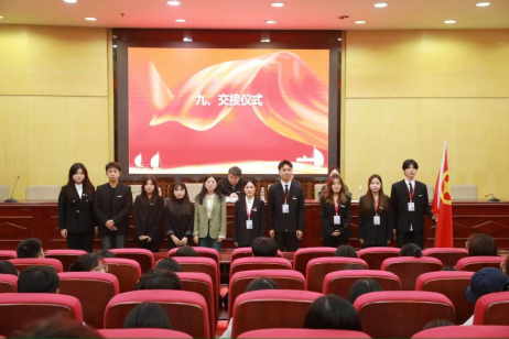 会上,学生工作办公室主任黎博宣读第十七届团总支学生会优秀干部、干事名单,全体与会老师为获奖者颁发荣誉证书并合影留念,以榜样力量激励新生奋勇争先。学生工作办公室洪盼老师宣读第十八届团总支学生会学生干部名单,并宣读了干部行为准则,对新任干部表示殷切期盼。当鲜艳的团旗交接到了新一任主席团的手中,象征着团学使命的接力棒正式传递;随后,第十八届团总支学生会副主席环境设计2303班张宇轩带领全体新成员庄严宣誓,立下服务同学、奉献学院的誓言。