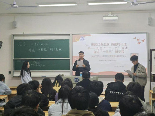 12月18日,医学工程技术学院在二教303开展”纪念'一二·九'运动,奋进'十五五'新征程”示范性主题团日活动。校团委副书记夏添、医学工程技术学院党委副书记罗荃、团委书记许璐及青年团员代表参加。