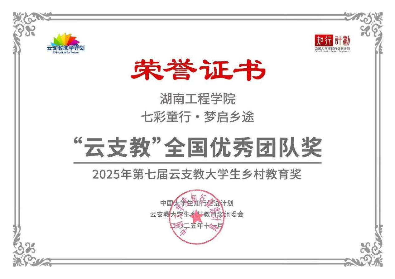 近日,我校设计艺术学院“七彩童行・梦启乡途”乡村支教团在2025年第七届云支教大学生乡村教育奖评选中获“全国优秀团队奖”,充分体现了学院在乡村教育帮扶中的创新与实践成效。