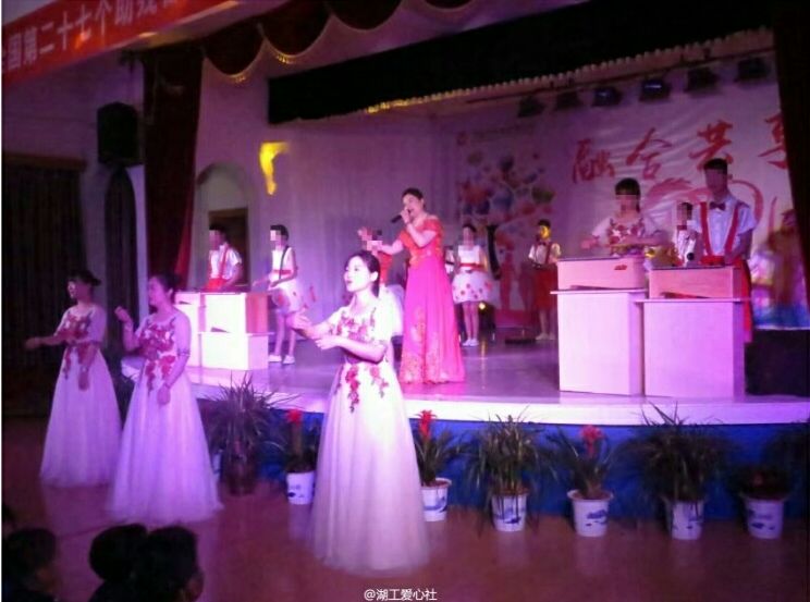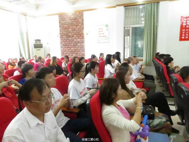 2017年5月19日早上9:10,我们的10位志愿者在爱心社外联部部长刘婕的带领下一同前往湘潭市特殊教育学校参与特校手语大课堂活动,在工作人员的安排下开始观看由特校儿童精心准备的文艺表演。