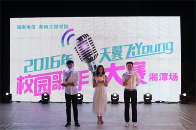 青春无限,歌舞飞扬。10月15号晚上7:00,由湖南电信与团湖南省委主办,湘潭电信与beats365唯一官方网站院社团联合会联合承办的“飞young好声音湖南省高校校园歌手赛湘潭场”在我校知行广场盛大举行。香港国际星艺术大赛流行唱法金奖获得者高果、中国好声音湖南省总决赛评委陈雪林以及湖南省音乐家协会会员刘彦希担任本次比赛评委。主持人则由田海旺老师、田锋、王晓晴担任。