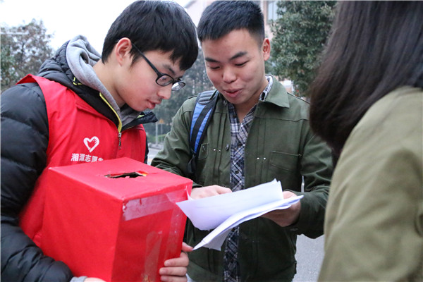 善举凝聚美德,爱心传递力量。为贯彻落实中共湖南省委、省政府《关于深入贯彻< 中共中央国务院关于打赢脱贫攻坚战的决定>的实施意见》要求,3月16日、17日两天,我校于新、北、南三个校区开展为期两天的“我想有个家”摆点募捐活动,数千名师生共同参与本次公益募捐活动。