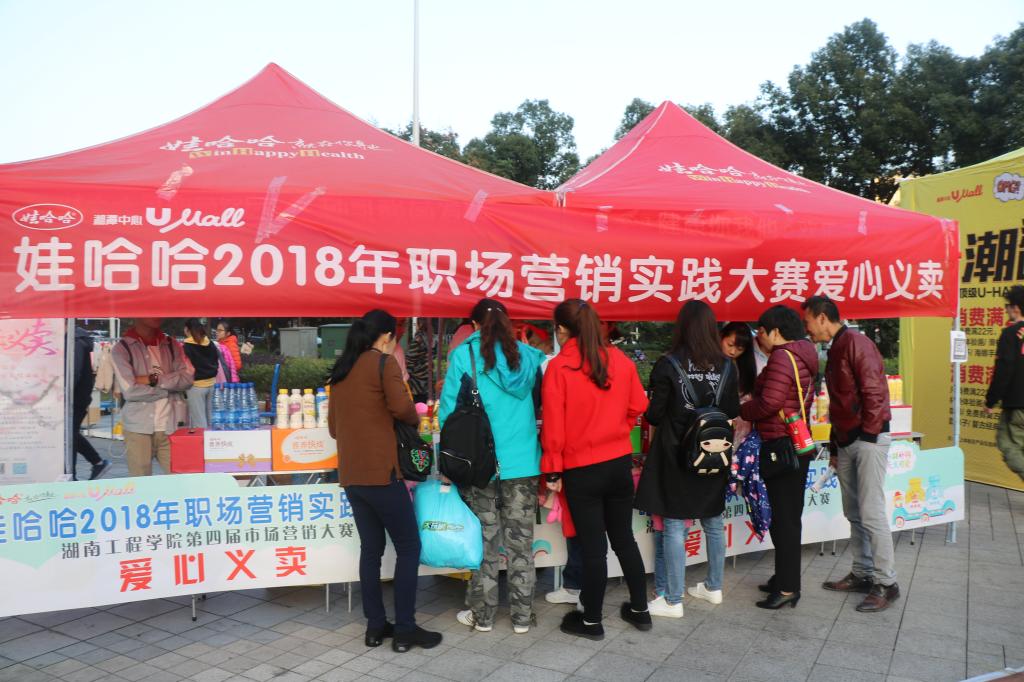 2018年11月23日晚上七点到11月25日晚上九点,beats365唯一官方网站院爱心社在湘潭中心U&mall会场举办了娃哈哈2018职场营销爱心义卖活动。
