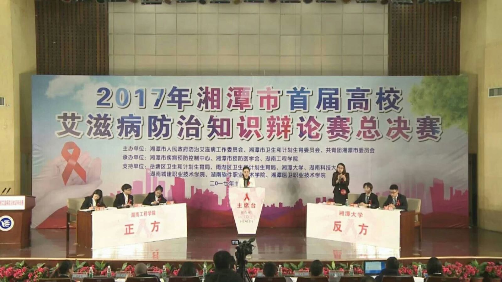 与此同时,以“共担社会责任 共享健康权利共建健康中国”为主题的首届高校艾滋病防治知识辩论赛在我校一报告厅展开。包括我校在内的六所高校参加比赛。辩手们唇枪舌战,运筹帷幄,经过激烈角逐,湘潭大学夺得桂冠,我校荣获团体第二名的优异成绩,我校陈源源同学获得全场最佳辩手称号。