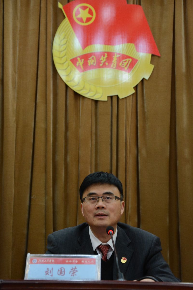 在热烈的掌声中,刘国荣发表重要讲话。他充分肯定了我校共青团工作所取得的成效。在同青年朋友谈理想信念时,他强调要坚定理想信念,塑造灵魂,筑牢听党话跟党走的思想根基。在谈使命担当时,他指出要坚持勤学修德,全面发展,担负起新时代青年的历史使命。在谈共青团工作时,他要求全校各级团组织要创新履行职能,深化服务,增强团组织的吸引力、凝聚力和影响力。最后,他希望全校各级团组织和广大青年学生一定能够以本次大会的胜利召开为契机,不忘初心、继续前进,在湖工这片热土上锲而不舍、敢为人先,不断开创学校团学工作新局面,让青春之光闪耀湖湘大地,用青春之笔书写人生辉煌,以优异的成绩迎接党的十九大胜利召开。