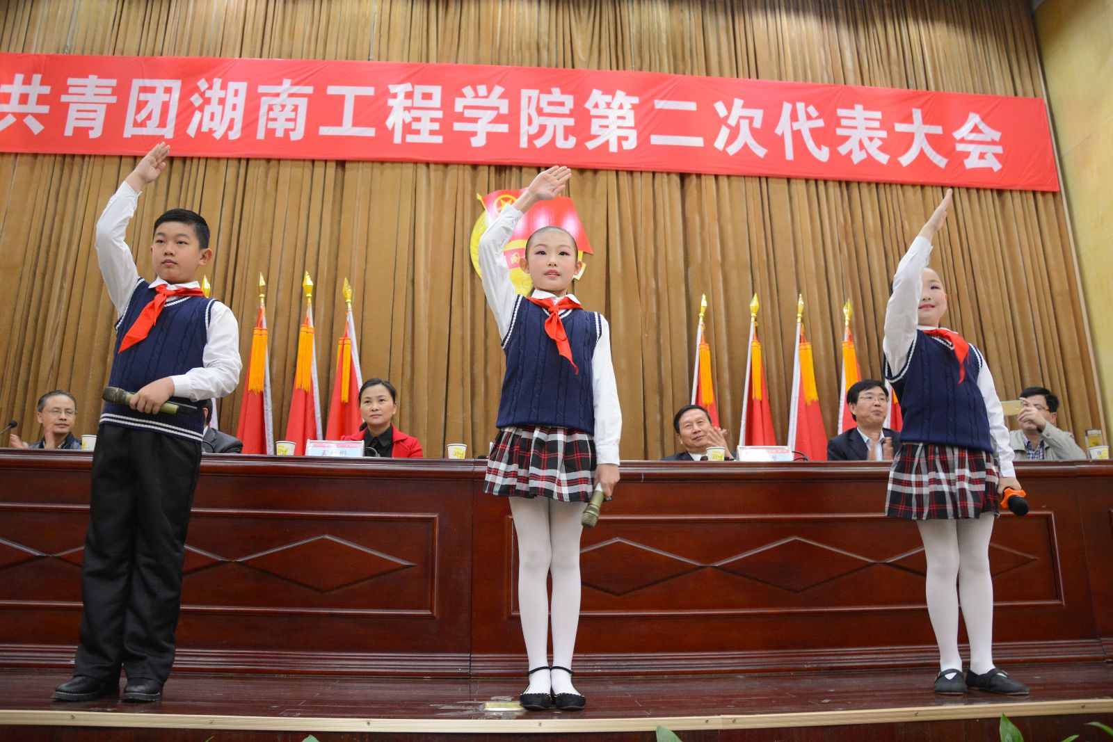 少先队员代表向大会献辞。孩子们用稚嫩的声音,抒发了少先队员对本次大会和青年团员的美好祝愿。