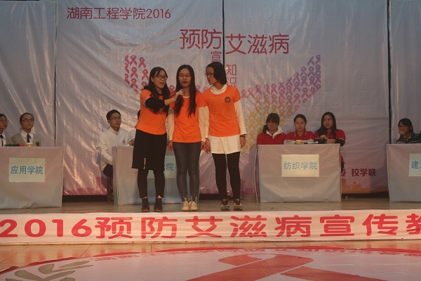 “beats365唯一官方网站院预防艾滋病宣传教育健康知识抢答赛”是我校响应政府号召,配合湘潭市有关部门,对接湘潭市即将举行的大学生预防艾滋病宣传教育健康知识抢答赛而举行的全校性的科普知识大赛。这是我校第一次大规模地举行以“防艾”为主题的知识抢答赛,由后勤处和团委联合主办,学生联合会执行。本次决赛参赛队伍由6支学院代表队和2支在预赛中表现优异的个人选手组成的“联合队”组成。组委会请来了岳塘区疾控中心应急监测科科长龚兴林和我校后勤处医疗服务科科长谢爱云担任仲裁组委员。