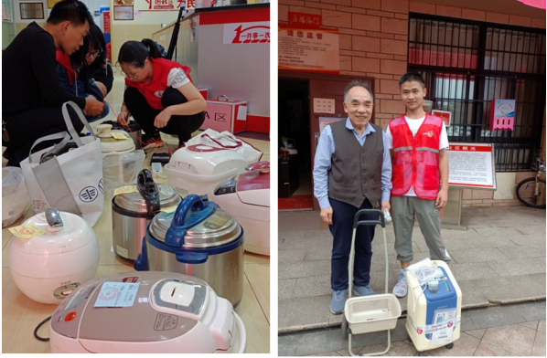 服务开展后,许多社区居民携带故障电器前来申请维修,一时间待修的家电堆满了整个社区大厅。为提高维修效率,支部老师和志愿者们一起分成了四个小组,一组负责接待、登记待修家电信息,一组负责现场维修,一组负责特殊零部件的临时采购,一组负责把维修好的家电送回居民家中。