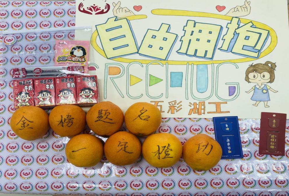 “五彩湖工”志愿者们为考研学子送上了祝福的拥抱和考研加油包,承载着满满祝福寓意的物品,虽像小小的萤火,却温暖了考研学子的心!收到温暖的考研学子,脸上都洋溢着幸福温暖的笑容。外国语学院商务英语1802班王盼思说:“最妙的是,拥抱时还会收到来自志愿者们的温馨问候和暖心祝福,在一定程度上化解了我的焦虑与不安。”活动负责人章浩东介绍,希望一个拥抱、一句关切、一份考研加油包,能消解考研学子早出晚归的疲惫,希望“五彩湖工”的温暖能给他们带去动力,衷心祝愿湖工学子能在考研这场马拉松比赛里顺顺利利一路高歌,学业有“橙”、心想事“橙”、一战“橙”硕、“橙”功上岸!