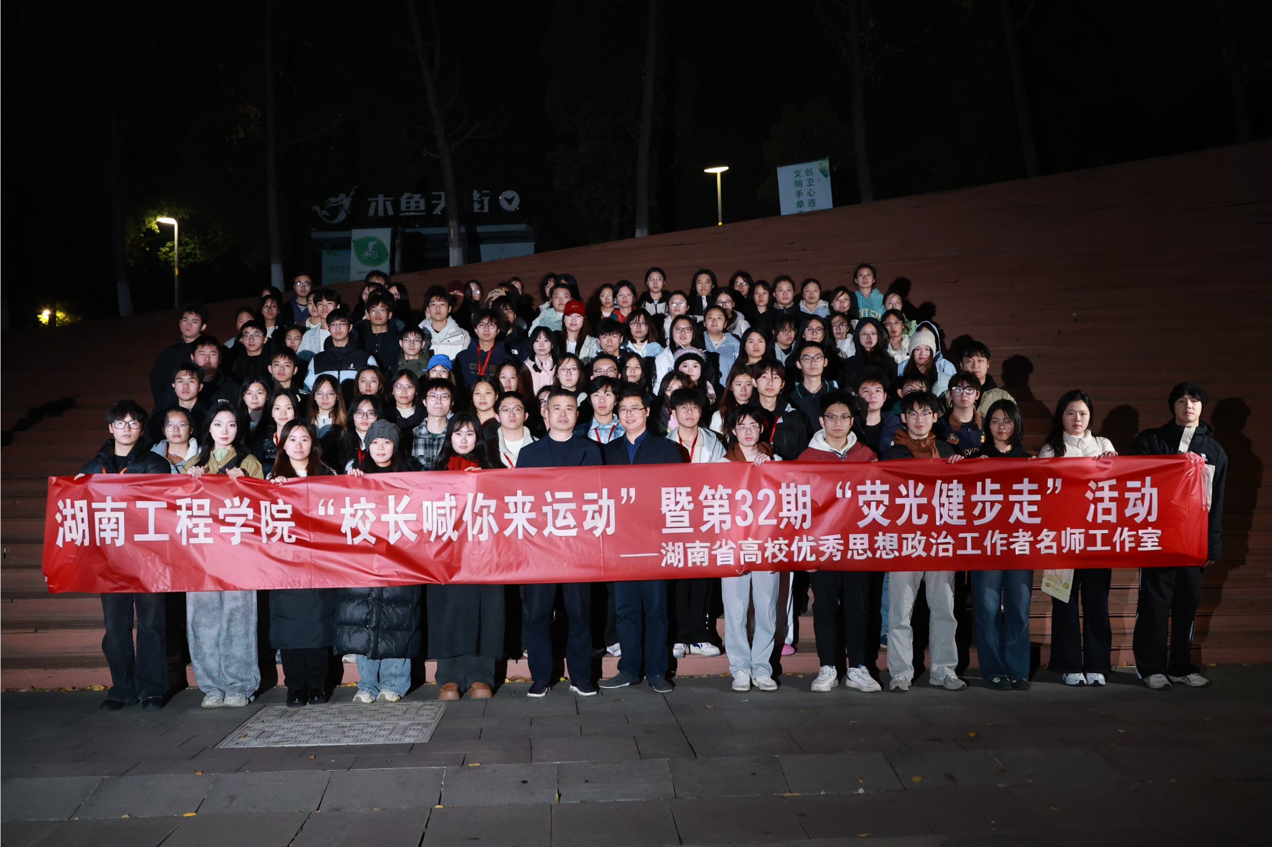 12月2日,我校开展“校长喊你来运动”之荧光健步走暨湖南省高校优秀思想政治工作者名师工作室实践活动。党委委员、副校长张小刚与校学生联合会学生干部一同沿木鱼湖畔步行,以实际行动响应全民运动的号召。