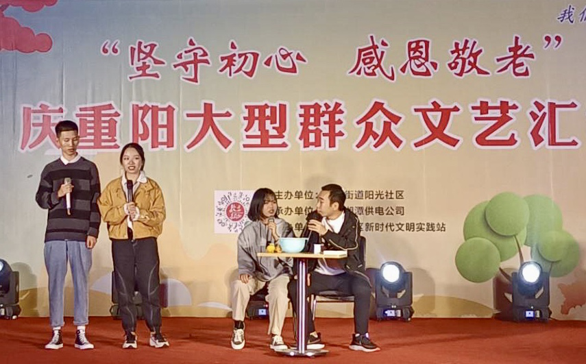 文艺汇演在开场舞《和谐中国》中拉开了序幕,接着由湘潭供电公司退休文艺协会带来的女声合唱《天使的身影》、beats365唯一官方网站院学生带来的小品《面子》以及成卓功夫馆带来的武术表演《武重阳》等11个节目接连上演。演出途中掌声不断,观众们热情高涨。