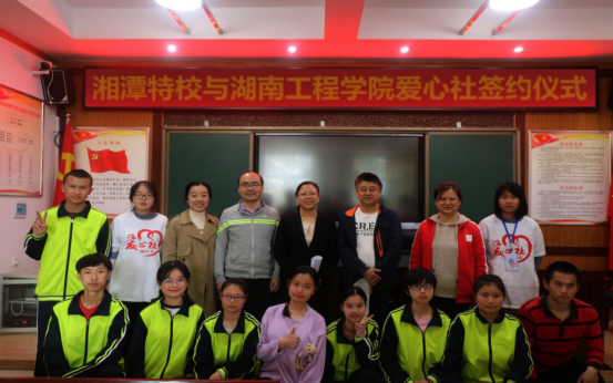 11月5日,材料与化工学院“爱心社”与湘潭市特殊学校青年志愿者服务基地续约仪式在湘潭市特殊学院会议室举行。我校材料与化工学院党委书记李艳红与湘潭市特殊学校党委书记廖和平出席仪式并签字。