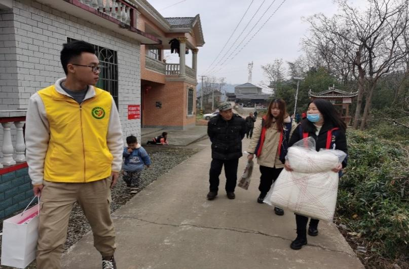 寒假期间,纺织服装学院联合洪江市志愿者协会、洪江市壹心社会工作服务中心开展了“雷锋家乡学雷锋”贫困家庭调查走访活动。志愿者一行走访了黔城镇、双溪镇、江市镇共三个乡镇的部分贫困家庭,赠送了米、油、被褥、防寒服、过年礼盒等物资。