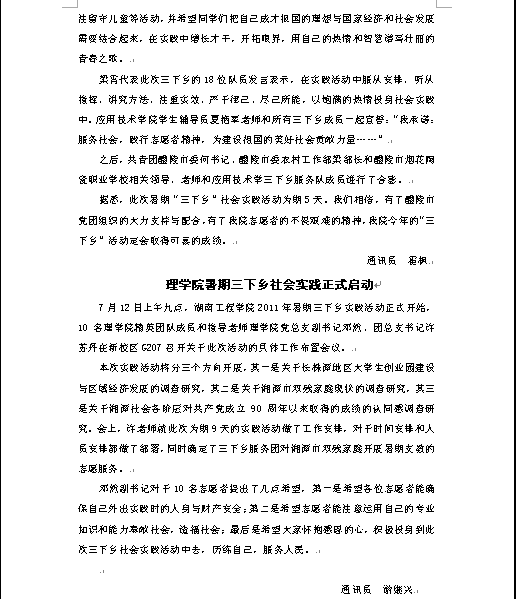 2011暑期“三下乡”工作简报第二期