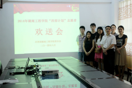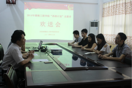 6月25日中午12:00,我校团委于体育馆108召开“西部计划”志愿者欢送会,团委书记黄中华、团委办公室主任涂璐前来与志愿者们告别。