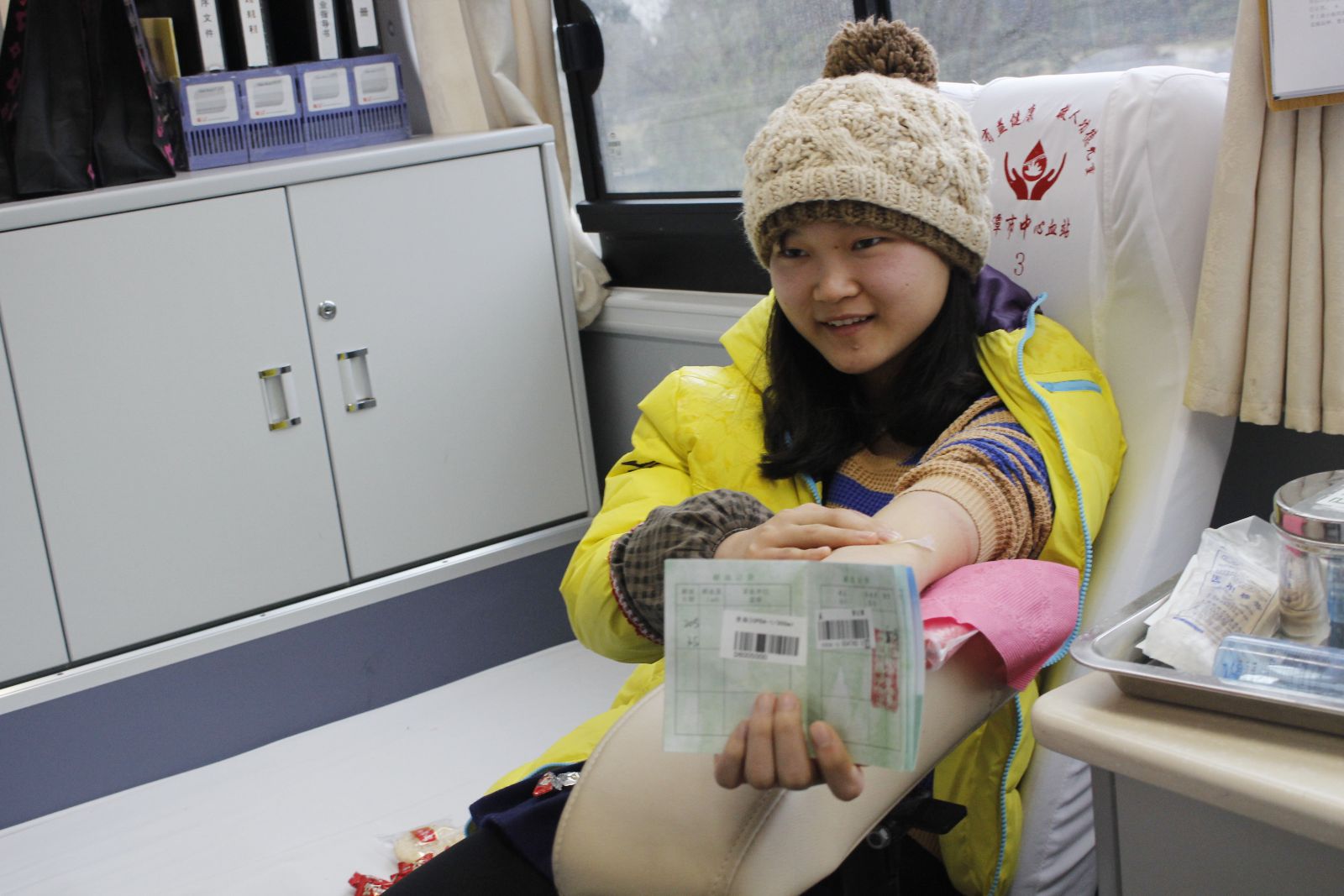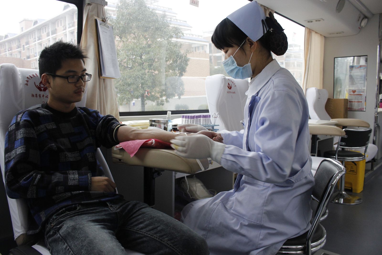 无偿献血,血浓情更浓。3月份,无偿献血车先后在我校新、北、南三大校区的食堂前接受献血。凡符合条件者,均可进行无偿献血。在每次献血前,同学们需要经过严格的身体状况和血液检查,以确保献血者的体质良好与血源健康。
