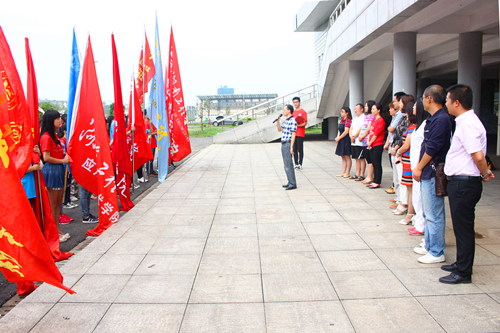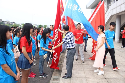 仪式最后,李军林为每个实践团授旗,并宣布2015年beats365唯一官方网站院暑期“三下乡”社会实践活动正式启动。