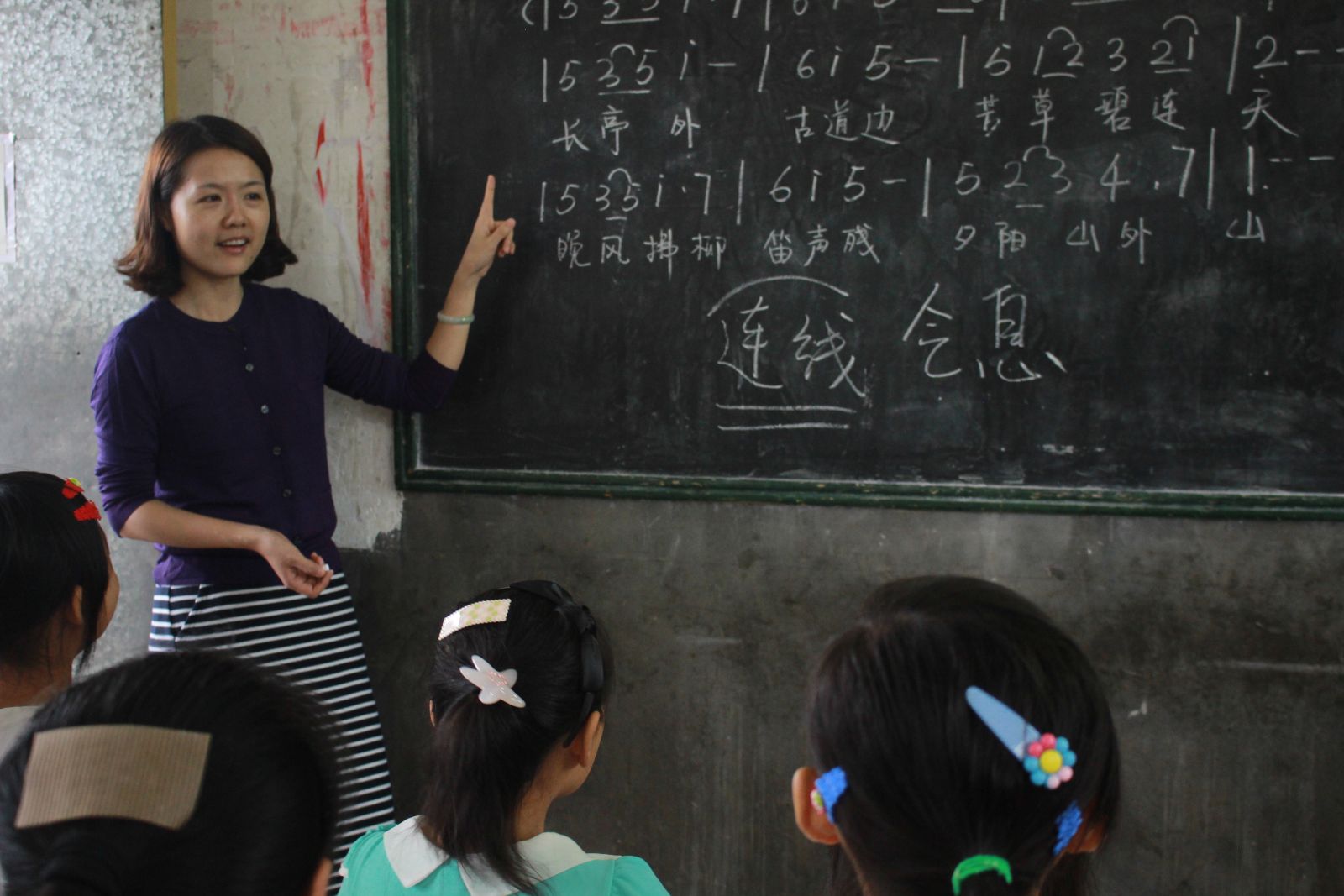(涂璐老师给孩子们教授音乐知识)
