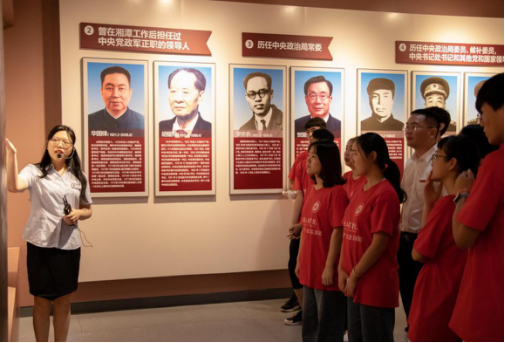 仪式结束后,实践团在湘潭党史馆讲解员王思宇的带领下,从觉醒、革命、建设、改革、筑梦五个部分进行了参观学习,了解了中国人民秉承以爱国主义为核心的民族精神,从身先士卒争取国家独立与民族解放,到新时代推进中国特色社会主义伟大事业的“四个全面”、努力实现中华民族伟大复兴的壮举。