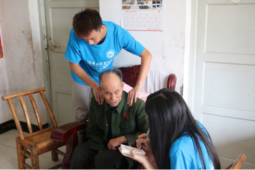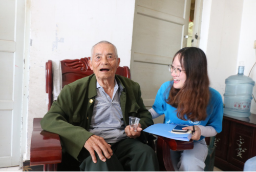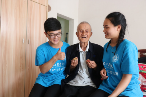 宋家全爷爷今年92岁了,他是一名于1951年参加抗美援朝的志愿兵。爷爷拿着军功勋章给志愿者们展示,并与志愿者们合了影。紧接着他为我们唱了一首歌:“雄赳赳,气昂昂,跨过鸭绿江……”爷爷认为国家的发展需要青年人,他很激动地讲到,现在国家的政策好,他们都生活得很幸福,要感激祖国带来的一切,不断努力地把祖国建设的更加繁荣昌盛。
