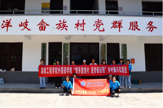 近日,外国语学院“情系畲族村 逐梦新征程”乡村振兴实践团前往株洲市炎陵县十都镇洋岐畲族村,开展“乡村振兴战略”为主题的下洋岐畲族村文旅产业发展模式调研活动,深入了解洋岐畲族村乡村振兴战略落实情况。
