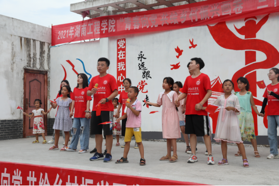 当天傍晚,由我校“三下乡”社会实践团与铺坪村的孩子们联手打造的文艺汇演精彩亮相。“希望你们以更加昂扬的斗志和饱满的热情投身于社会实践当中,以实际行动献礼建党百年,助力乡村振兴,为建设富饶美丽幸福新铺坪汇聚磅礴青春力量。”张小刚在致辞中勉励志愿者。《我和我的祖国》《请党放心,强国有我》、军体拳表演、舞蹈节目《你笑起来真好看》、歌曲《强国一代有我在》……质朴的笑脸、专注的眼神,志愿者们连夜用墙绘装饰的舞台上,大、中、小学生们手拉手、心连心,共同演绎当代少年心中的家国情怀。