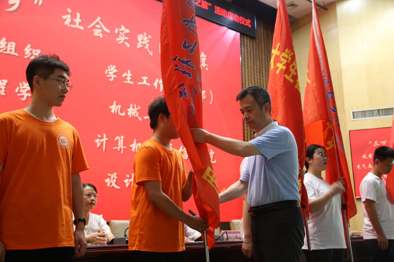 张小刚为16支校级“三下乡”实践团授旗,并作出征讲话。他希望全体志愿者要围绕全面推进乡村振兴聚焦发力,深入基层、调研基层、服务基层,围绕老百姓的实际需求有针对性地开展各项实践服务活动,不断提升我校三下乡活动的影响力、感召力和吸引力。要充分展现湖工学子的良好精神风貌,牢固树立“安全第一”的思想,认真实施、全面总结,深化拓展“三下乡”活动内容和形式,努力让“三下乡”送到群众心坎里,在奉献社会、服务人民中锤炼思想、体悟成长,以实际行动为乡村振兴赋能助力。