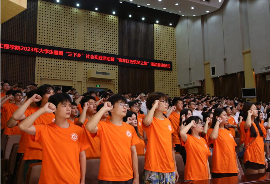 活动在慷慨激昂的国歌声中拉开帷幕。校团委书记刘琤主持仪式并介绍了我校“三下乡”活动的整体情况,志愿者代表时冰鑫同学带领全体志愿者庄严宣誓,承诺将牢记“锲而不舍,敢为人先”的校训精神,坚定理想信念,站稳人民立场,发扬志愿精神,遵守团队纪律,积极担当作为,为乡村振兴贡献智慧和力量。
