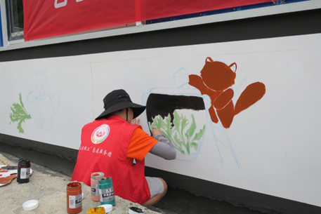 一勾一点,一笔一画,看着人物、山水、酸菜等元素一天比一天更清晰了,志愿者们的脸上自豪感、自信心又多了几分。