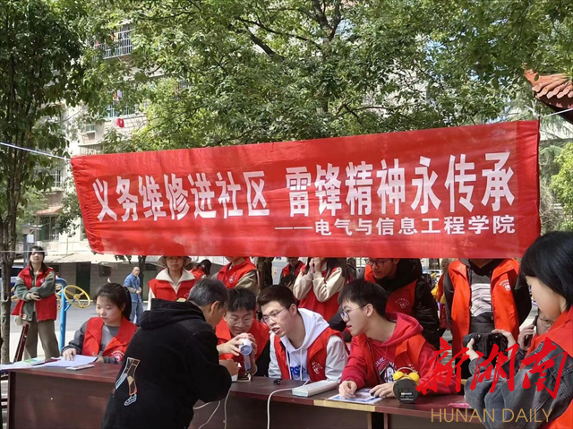 3月5日下午,湘潭市鑫山小区内一群身穿红马甲的学生党员与共青团员热闹了整个社区。该校电气与信息工程学院学生志愿者正专心致志地为社区的群众义务维修台灯、电风扇、电热壶等物品,并和老人们解释电器出现问题的原因以及应该怎样维修。志愿者们在展示和实践自己专业知识的同时,为社区老人带去了欢声笑语。