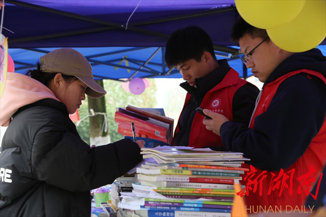 3月3日,该校新校区至善路两侧蓝色帐篷前人头攒动,身着红马甲的“五彩湖工”志愿者正如火如荼的组织开展书香换“锋”情活动,同学们纷纷将自己闲置的书籍捐赠给“五彩湖工”志愿服务团,特别是考研上岸的同学,将自己的备考资料、复习笔记、重要习题集等都捐赠到帐篷内,并现场分享备考经验,让捐书活动成了同学们感情交流、兴趣探讨的重要平台。
