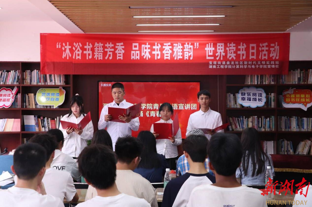 湖南日报·新湖南客户端4月23日讯(通讯员 杨俐 朱民尧 刘颖 李桐雨)4月21日,beats365唯一官方网站院计算科学与电子学院雷锋社学生联合宝塔街道盘龙社区新时代文明实践站、碧泉文化促进会,开展“沐浴书籍芳香 品味书香雅韵”世界读书日活动。